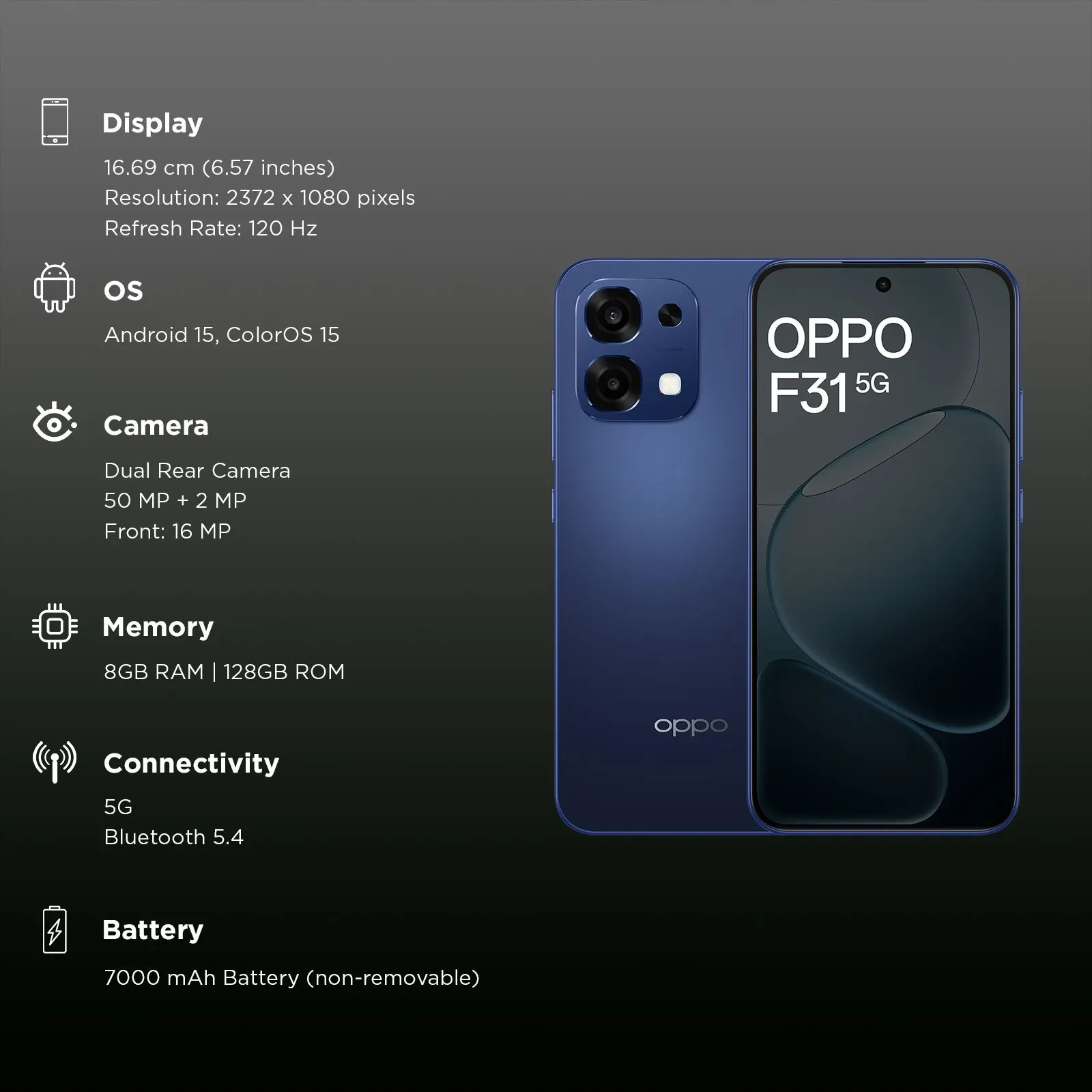 OPPO F31 5G (8GB RAM, 128GB, Midnight Blue)