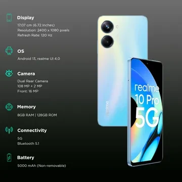 Realme 10 Pro 5G (8GB RAM, 128GB, Nebula Blue)