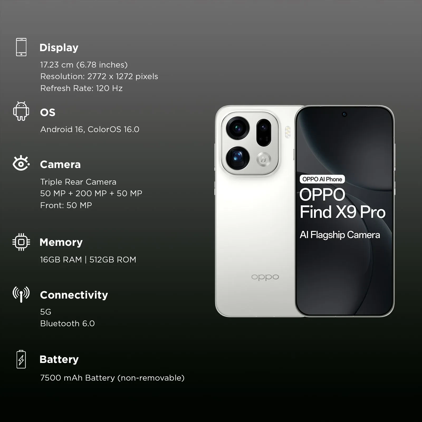 OPPO Find X9 Pro 5G (16GB RAM, 512GB, Silk White)